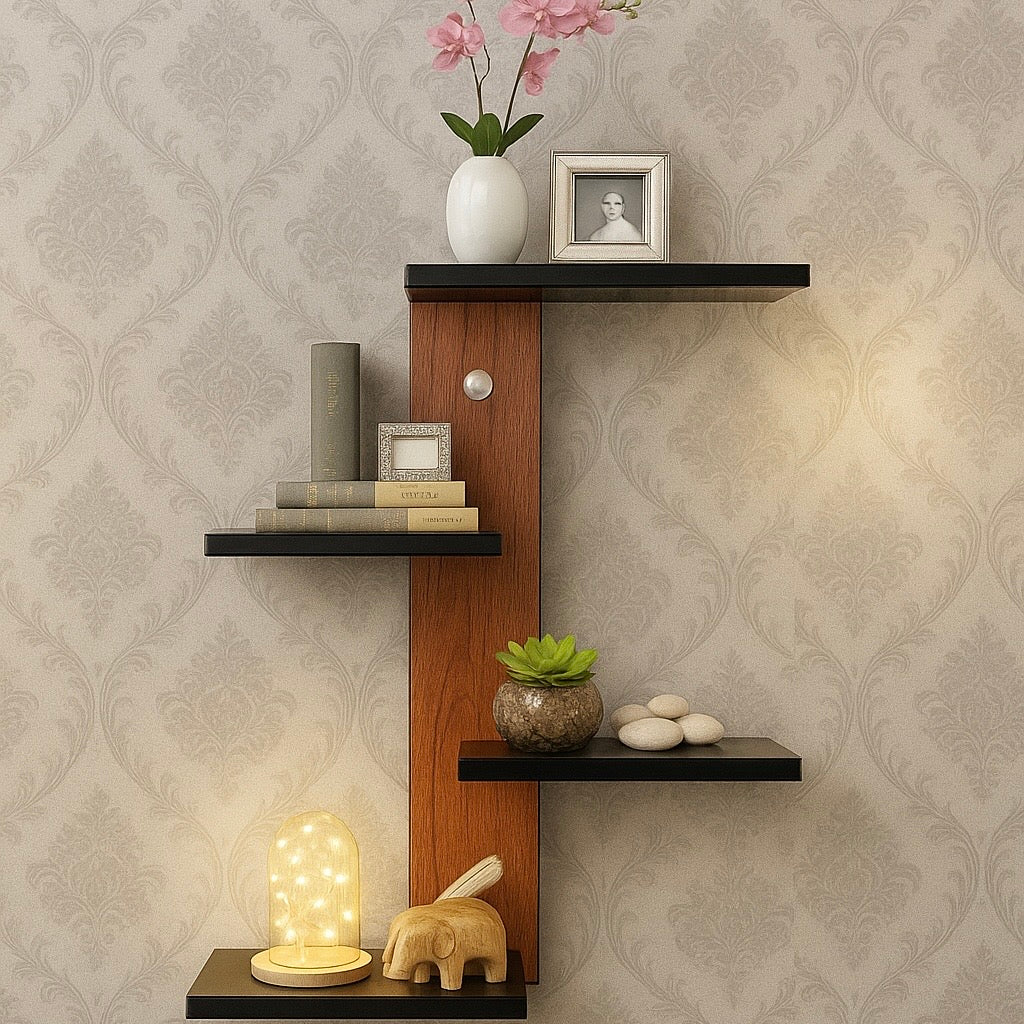 A beautifully crafted wooden wall shelf adding elegance to any room décor. Its modern zigzag design offers space for books, plants, and décor pieces. Perfect for bringing a touch of warmth and style to your living space.